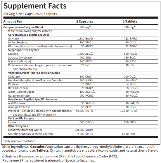 Vital-Zymes Chewable is a good choice for administering enzymes to children or adults who may prefer a chewable tablet. This broad-spectrum enzyme formulation has moderate amounts of enzymes to allow it to be comfortably chewed for routine daily use or as needed. Vital-Zymes Chewable can assist in the breakdown of a wide range of proteins, peptides, fats, complex carbohydrates, sugars, and fibers.† Serratia peptidase, a unique endopeptidase enzyme, helps protect sensitive GI tissue from irritation that can affect tissue health and intestinal comfort.† Enzymes with DPP-IV activity and a full range of disaccharidases are included.†